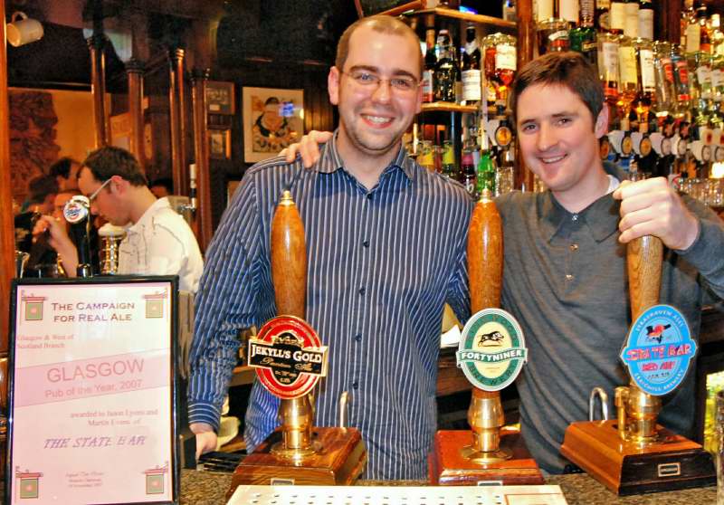Martin Evans (left on the photo to the left) and Jason Lyons proudly display the 2007 Glasgow Pub of the Year certificate presented to them by the local CAMRA Branch.