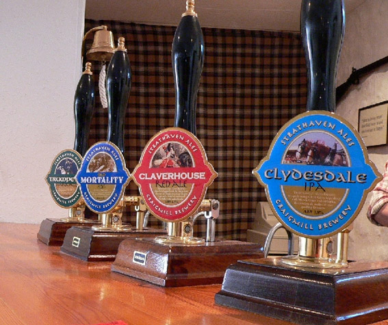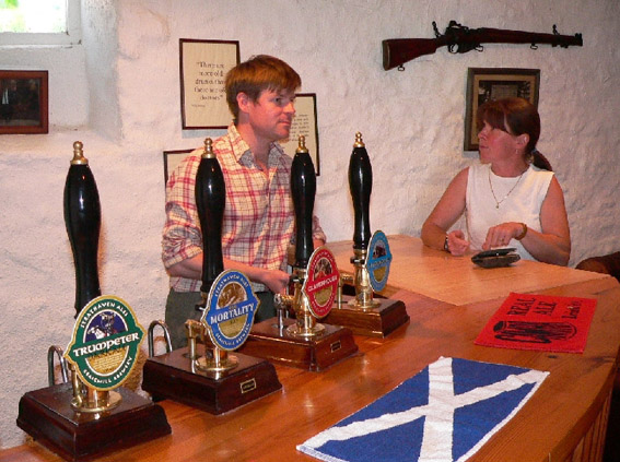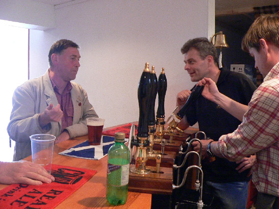 CAMRA's Robin Jones discussed tasting points with Strathaven Brewery's John Muir.
