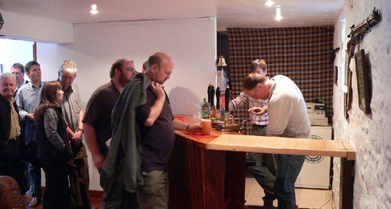 The first pictures show the initial rush to get to the bar for the first pint; this receded eventually to enable a more convivial service to be offered.