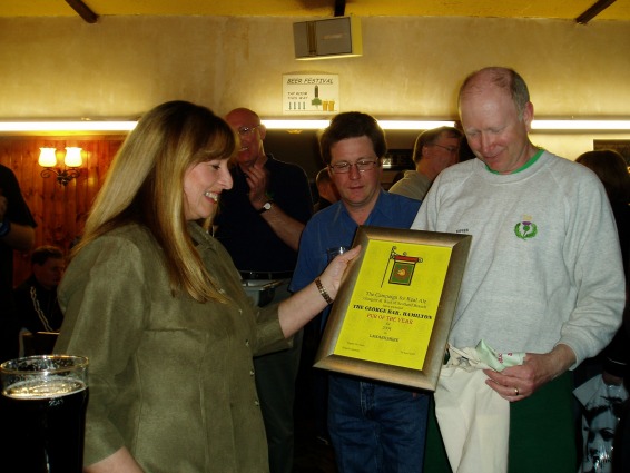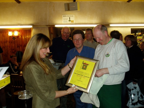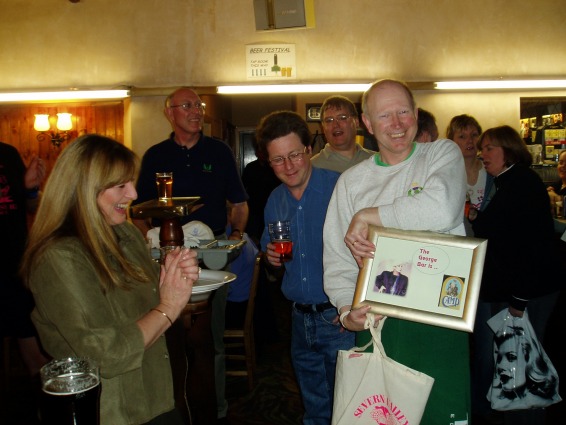Tom Ord gave Lynn Adams a spoof presentation describing the George as "Camp" as this was the only part of the "Campaign for Real Ale" watermark that was visible on the previous year's certificate.