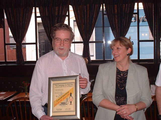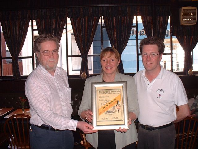 John Kelly presented the Pub of the Year award to Lynn Adams.